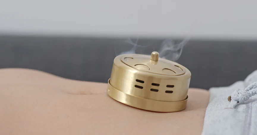 Moxibustion is the act of burning the dried herb mugwort, Artemesia vulgaris latiflora, a species of the Chrysanthemum family. The unique properties of this herb help to restore warmth, expel cold, dry dampness and promote qi and blood movement throughout the meridians of the body. The warming action removes stagnation and penetrates deeply within the muscles and organs to reduce pain and swelling.